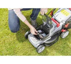 AL-KO’s Easy Flex 34.8 Li cordless mower is light to push with a 30 litre grass collector. There are 6 cutting heights adjustable using a single point lever with a range of 25 to 75mm.