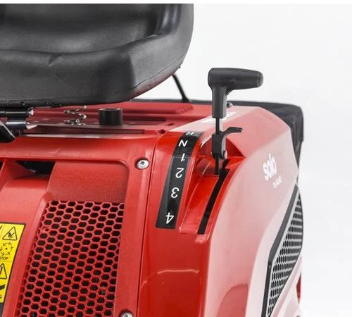 The drive has 4 forward and 1 reverse gear with a travelling speed of up to 4.5 km/h. The 130l rear collector can be emptied from the driving seat using the telescopic lever. Ride on mowers of this size are great if you have winding lawns or garden obstacles as they are highly manoeuvrable.