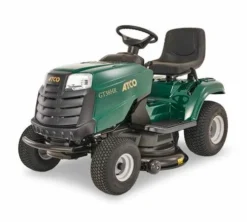 The ATCO GT 38HR is a side discharge grass tractor suppliedwith a mulch kit and tow bar. Fitted with a reliable and economical STIGA ST450 engine. the mulching ride on mower has responsive hydrostatic transmissionand a 98cm / 38″ twin bladed cutting deck.