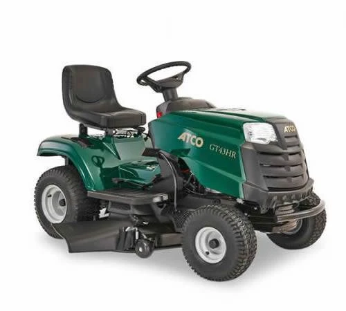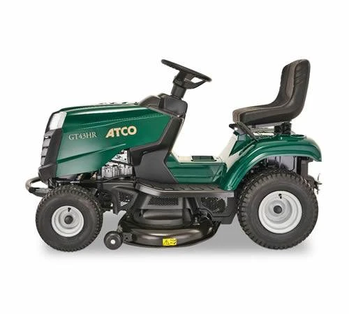 The ATCO GT43HR is a 108cm / 42.5″ side discharge andmulching garden tractor with responsive hydrostatic transmission. The twinbladed cutting deck features 2 anti-scalp wheels for added manoeuvrability whenmowing slopes and uneven terrain. Suitable for informal lawn areas up to 2.5acres. the mulching lawn tractor is powered by a STIGA ST500 engine which is aperfect balance of fuel economy and performance.
