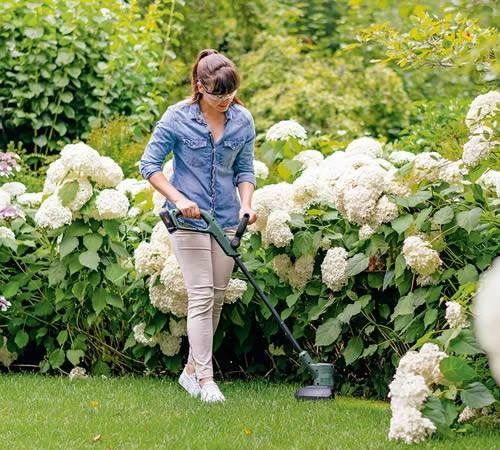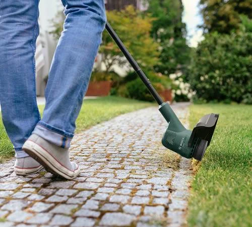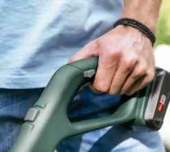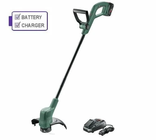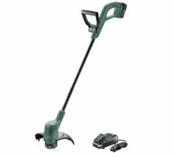 The EasyGrassCut 18-230 cordless line trimmer from Bosch is powered by an 18v 2.0ah lithium battery. Ideal for light grass trimming and edging.