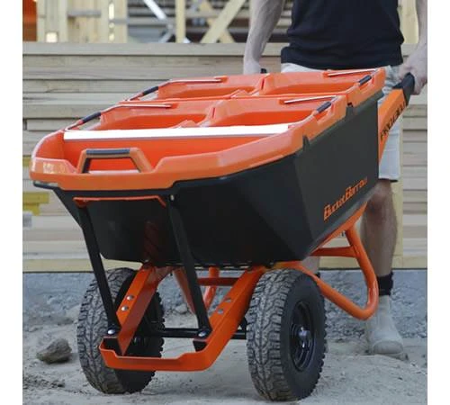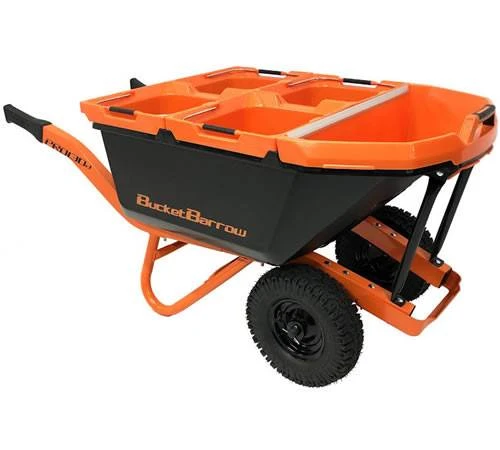 The overall size is about the same as a 100 litre barrow. yet the BucketBarrow allows for an additional 30 litres. The four 20litre buckets are ideal for working under time constraints and can be loaded and unloaded quickly and easily. The scoop has a robust aluminium blade for extra longevity and doubles as an effective dustpan for clearing away at the end of a job.