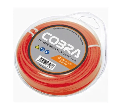 Orange label Cobra 126 metre pack of round nylon trimmer line with 2.0mm diameter. Cobra cutting line is suitable for using by both domestic and professional users in grass trimmers and brush cutters.