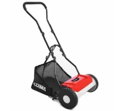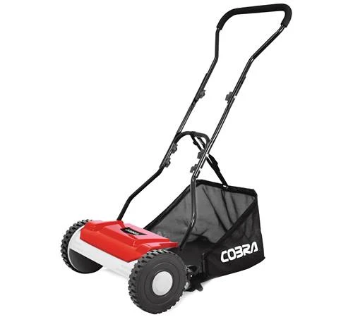 The Cobra HM381 has a 38cm / 15” cutting width and is lightweightat only 8.5kg. Suited to smaller lawns the mower has a 5 bladed cylinder and a fabricgrass bag that clips easily at the rear of the mower.