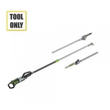 The Ego PPX1000 set is a cordless telescopic pole supplied with the PSX2500 pruning attachment and the PTX5100 hedging attachment.