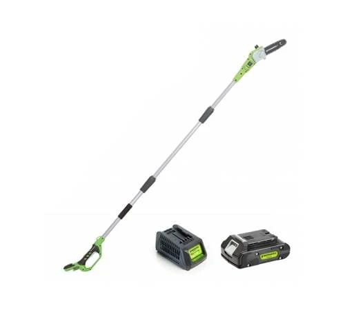 The G24PSK2 24v polesaw from Greenworks is a handy addition to the range. Quiet and environmentally friendly with the added bonus of being cordless.