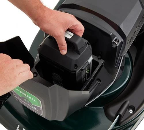 The Harrier 48 GreenSeries™ mowers use a 60v lithiumpower system universal to Toro and Hayter battery powered machines . TheHarrier 48 VS (477) has features used on the petrol models including variablespeed auto drive. vari-pitch. trim side and a 2 piece ribbed rear roller.