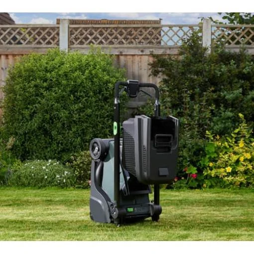 This hand-propelled mower can be folded down for easy and convenientstorage and transportation with a centrally located handle to make life eveneasier. Store the Hawk 36 in an upright position for space saving.