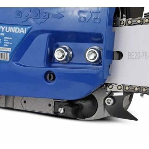 The Hyundai HYC6200X is a very powerful 2-stroke chainsaw with a 62-cc engine and 20″ guide bar. This chainsaw is ideal for heavy duty landscaping and forestry work. The 62-cc engine is Euro-5 compliant. maximising output with lower emissions. The soft pull and easy start make this machine start effortlessly every time. The 20-inch guide bar and chain have been engineered by Hyundai to tackle even the most difficult jobs.