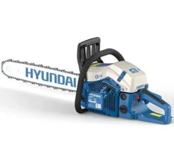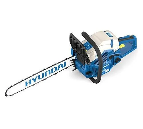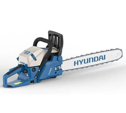 Very powerful 62cc Hyundai chainsaw suitable for the most demanding tasks. The HYC6220 saw is suitable for domestic and commercial use. The HYC6220 is fitted with a 20 inch bar and chain engineered by Hyundai for the most efficient tree and log cutting. The saw is fitted with a safety brake to reduce kick back. which means the chain stops instantly in the event of kick back. The chain tensioner is side mounted for easy access. Extra comfort is provided by the ergonomic handles with a built in anti-vibration system. The system reduces vibrations felt by the user in the hands and arms whilst operating the chainsaw. The chain is automatically lubricated from the chain oil tank so it’s kept in good order. If the chain isn’t kept lubricated it won’t cut properly or turn correctly around the bar.