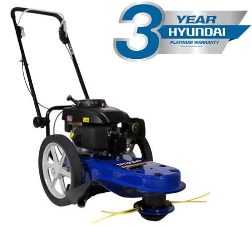 The Hyundai HYFT56 field trimmer is a great example of a professional quality rough cut machine which is reliable and great value for money. The HYFT56 uses a 160cc Hyundai engine to power its 22inch/56cm cutting width through more challenging and over grown areas like fields and meadows. Heavy duty wheels make this machine easy to handle.