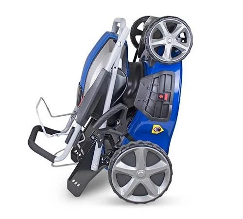 The HYM480LI460SP 4 wheel mower has been designed with a space-saving vertical storage system. making it compact and easy to transport.