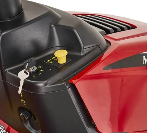 This compact machine measures just over a metre wide so perfect for smaller gardens who want a ride on machine to fit through narrow access points. The Hydrostatic transmission has a reverse gear and with a turning of just 180cm can easily get round trees. paths and borders.