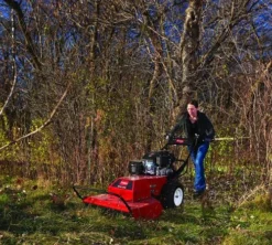 With a cutting width of 71cm. the Toro BRC-28 is self propelled giving you a travelling speed of up to 5.5km (3.4mph) forward and up to 3.2km/h (2mph) in reverse. Our customers love this machine because its so easy to manoeuvre and even features one-hand control. Tackle even the toughest tasks with the pivoting deck and flail blade which increases cutting performance. The Pivoting deck follows the contour of the ground by pivoting on each side. This action minimizes scalping and improves traction in uneven terrain.Â
