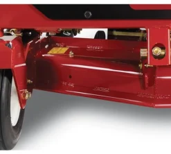 For optimum comfort whist mowing the ZS4200T has a 46cm highback seat. cup holder and arm rests. The mowers automatic parking brake isengaged when the control arms are moved outward which is simple to action fromthe seat and eliminates a separate parking brake.