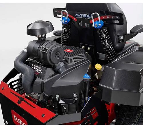 The Toro Titan XS4850 has a superior suspension system which rear shocks can be adjusted to suit user comfort. The MyRide offers great operator comfort for mowing. reducing vibrations and impact from uneven ground when you mow. With excellent visibility. padded seat and armrests. the Toro Titan XS4850 is a comfortable and durable model for professional and amateur gardeners alike.Â
